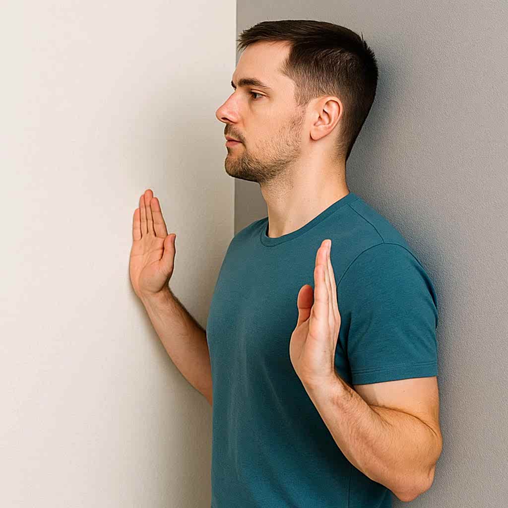 - Duvarda postür düzeltme: Sırtınızı duvara yaslayarak baş, omuz ve kalçayı aynı hizada tutmaya çalışın.